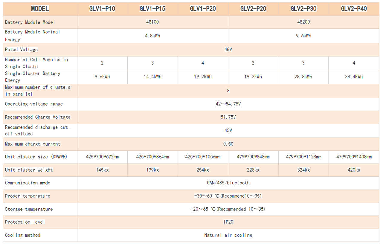5.Multiple clusters are parallel. A maximum of eight battery packs can be connected in parallel